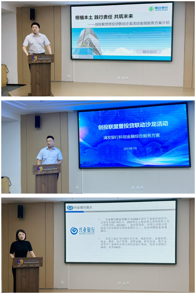 隨后,煙臺(tái)銀行、興業(yè)銀行、浦發(fā)銀行分別根據(jù)自身優(yōu)勢介紹了特色金融服務(wù)產(chǎn)品。各與會(huì)銀行表示,“投貸聯(lián)動(dòng)”機(jī)制與銀行支持新興產(chǎn)業(yè)和優(yōu)質(zhì)企業(yè),推動(dòng)綠色金融、科技金融的發(fā)展目標(biāo)“不謀而合”。