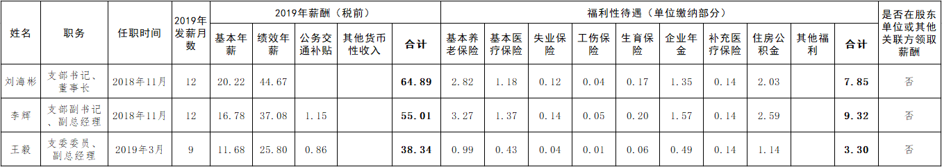煙臺財金集團負責(zé)人2019年薪酬披露